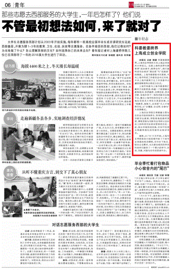 青年报:科委教委跨界 上海成立创业学院